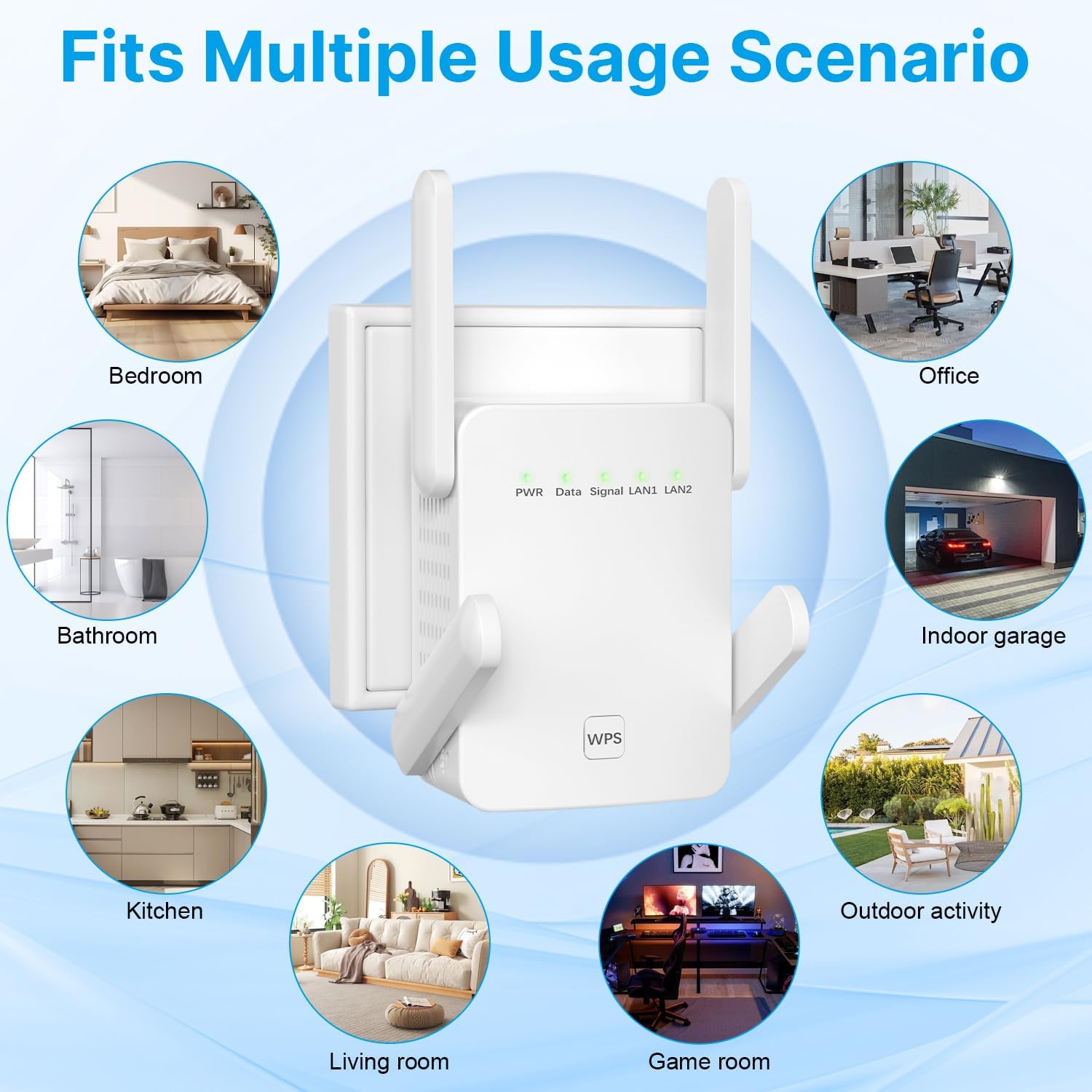 Eliminate Dead Zones: Equipped with 4 high-performance antennas, this WiFi booster extends coverage up to 10,000 sq.ft., ensuring strong, uninterrupted signals throughout your home, from bedrooms to gardens.