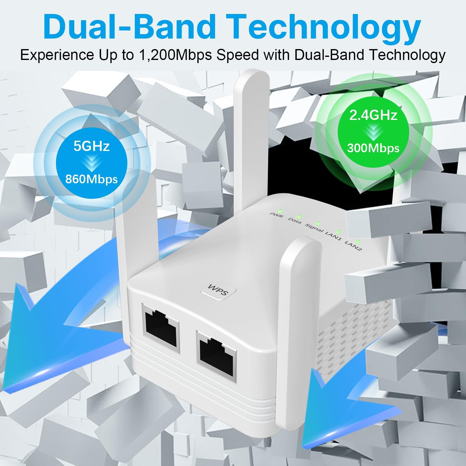 Blazing Speeds: Experience up to 1,200Mbps with dual-band technology (300Mbps on 2.4GHz and 860Mbps on 5GHz), perfect for seamless web browsing, gaming, and 4K streaming.