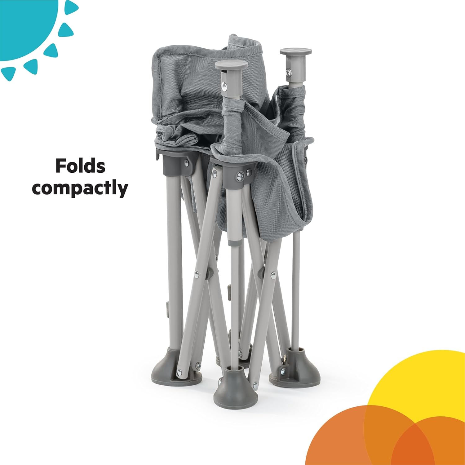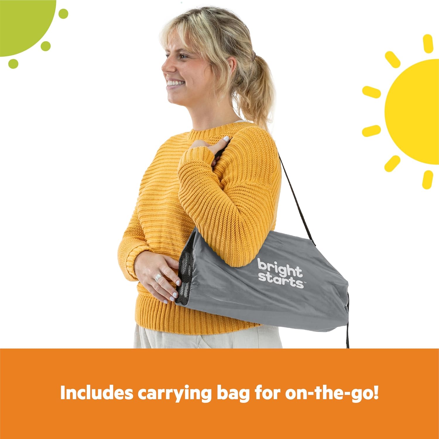 With over 2 million sold, the original Pop N Sit portable booster seat joins the Bright Starts collection of products to help families find more joy in every moment. From inside to outside, baby to toddler, and mealtime to playtime, this multi-purpose travel booster offers your little one a secure place to sit. This #1 Booster Seat* from the #1 Manufacturer of Feeding Boosters** features 3 modes of use: floor seat for baby, feeding seat with removable tray, and toddler booster. For babies, attach to an adult chair using the included straps and BPA free tray to create a portable chair top high chair. For toddlers, use the seat as a booster that can pull up to the table by removing the tray. In floor mode for baby, you can use the Pop N Sit whenever you need an extra seat – picnics, sporting events, or right at home! The rear storage pocket holds your daily essentials. Folds compactly when not in use and includes a carrying bag with shoulder strap and extra pocket. Features a dishwasher safe tray and machine washable seat pad. Dimensions: 15 x 13.5 x 14.75 or 5 x 15 when folded. Made for 6 months to 3 years old or up to 33 pounds. Gender neutral grey color. Third party safety tested and approved. (*Circana, Retail Tracking Service, U.S., Highchairs-Boosters, dollar sales, Jan-Nov 2023 combined); over 2 million sold worldwide. **Circana, Retail Tracking Service, U.S., Highchairs-Boosters, dollar sales, 12 months ending October 2023)